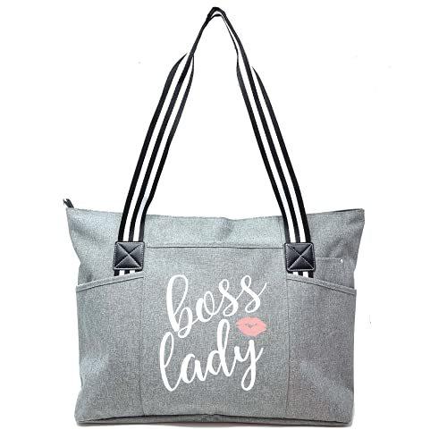 Boss Lady Boss 女性向けギフト グレー かわいいファスナー付きキャンバストートバッグ ポケット付き 楽しい